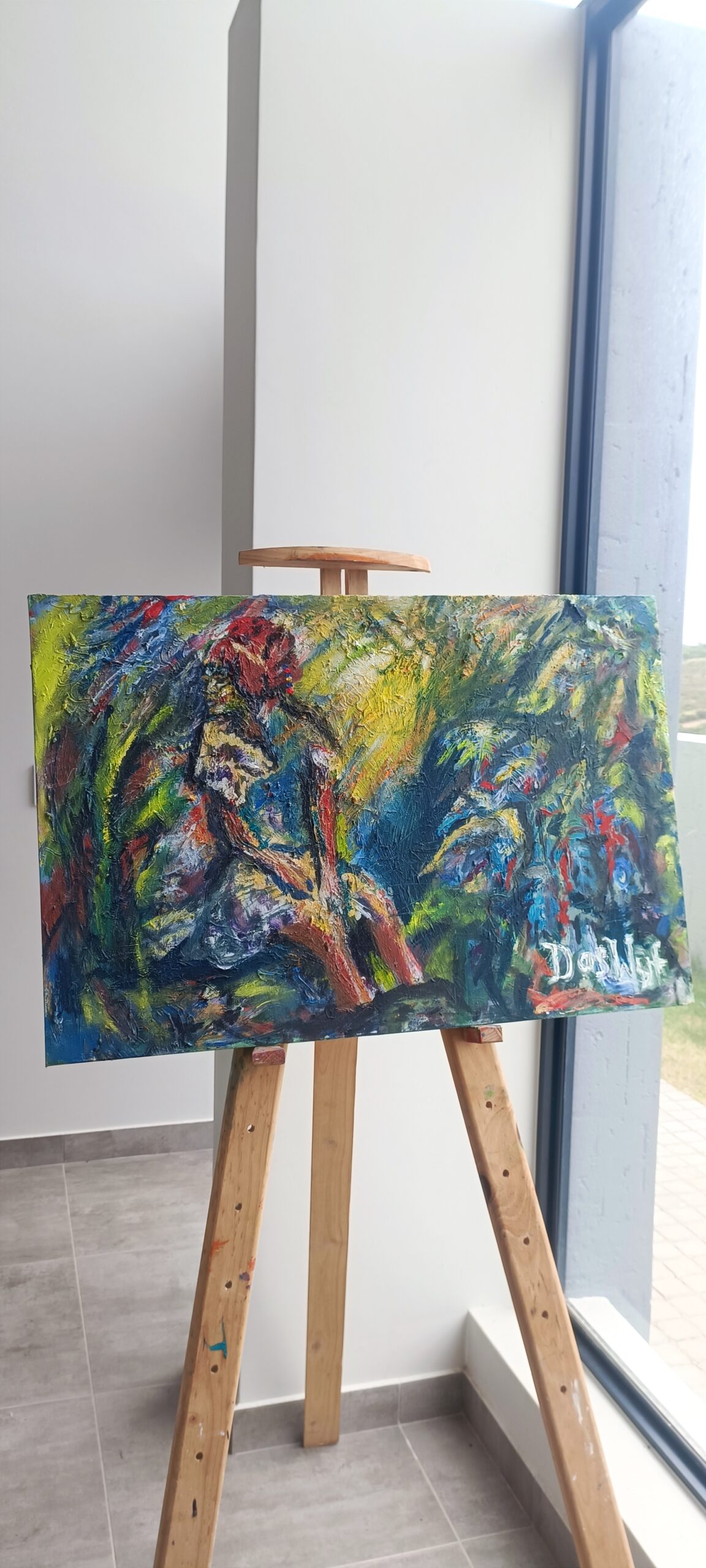 This artwork is an embodiment of our feelings and realisation. Have you ever sat down in the forest? Close your eyes and take in the smell of the leaves in the understory, the damp moss, the smell of wood and the fresh smell of Geosmin, an earthy odor, secreted by certain bacteria and fungi in the soil when it gets wet. Listen to the trickle of water in a stream, the wind rustling through the leaves and the sing-song conversations of the birds. It is here, where you can find peace and realise how connected we are to the earth. In moments like these where you can feel the heartbeat of life, the planet. Realise that your kindness and compassion starts with you, and that you can spread these feelings and way of doing in the world Take a chance and recharge with your feet in the soil. I am here in Africa and I can feel the heart of the world.